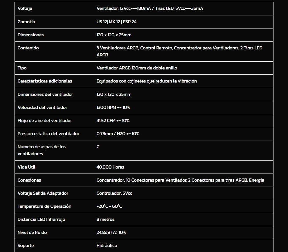 El kit incluye 3 ventiladores ARGB, un hub controlador, 2 tiras LED ARGB, y un control remoto de ARGB para máximas opciones de customización de tu equipo.