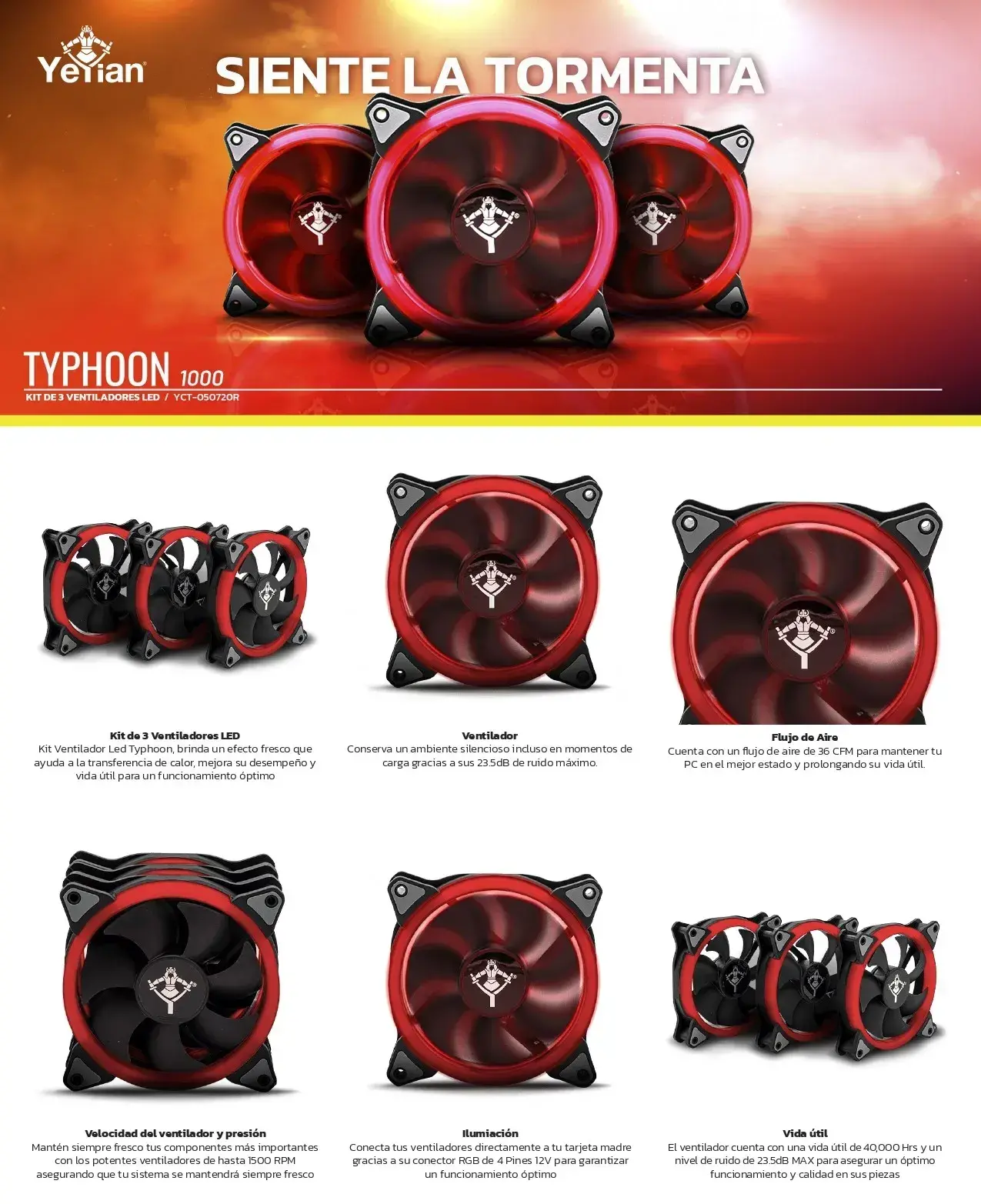 KIT DE VENTILADORES GAMER YEYIAN YCT-050720R TYPHOON