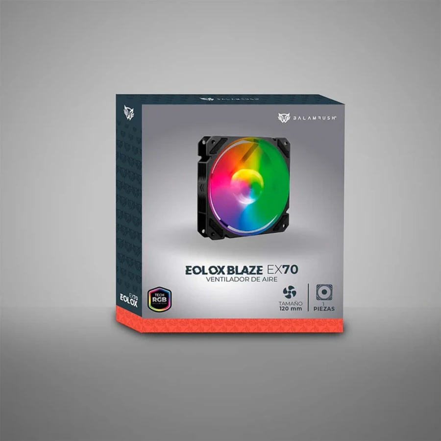 Ventilador BALAM RUSH EOLOX BLAZE EX70 / 120MM / RGB / 1200 RPM / 30.71 CFM / 22.1 dBA / 4Pin 12V, 3Pin 5V / Negro