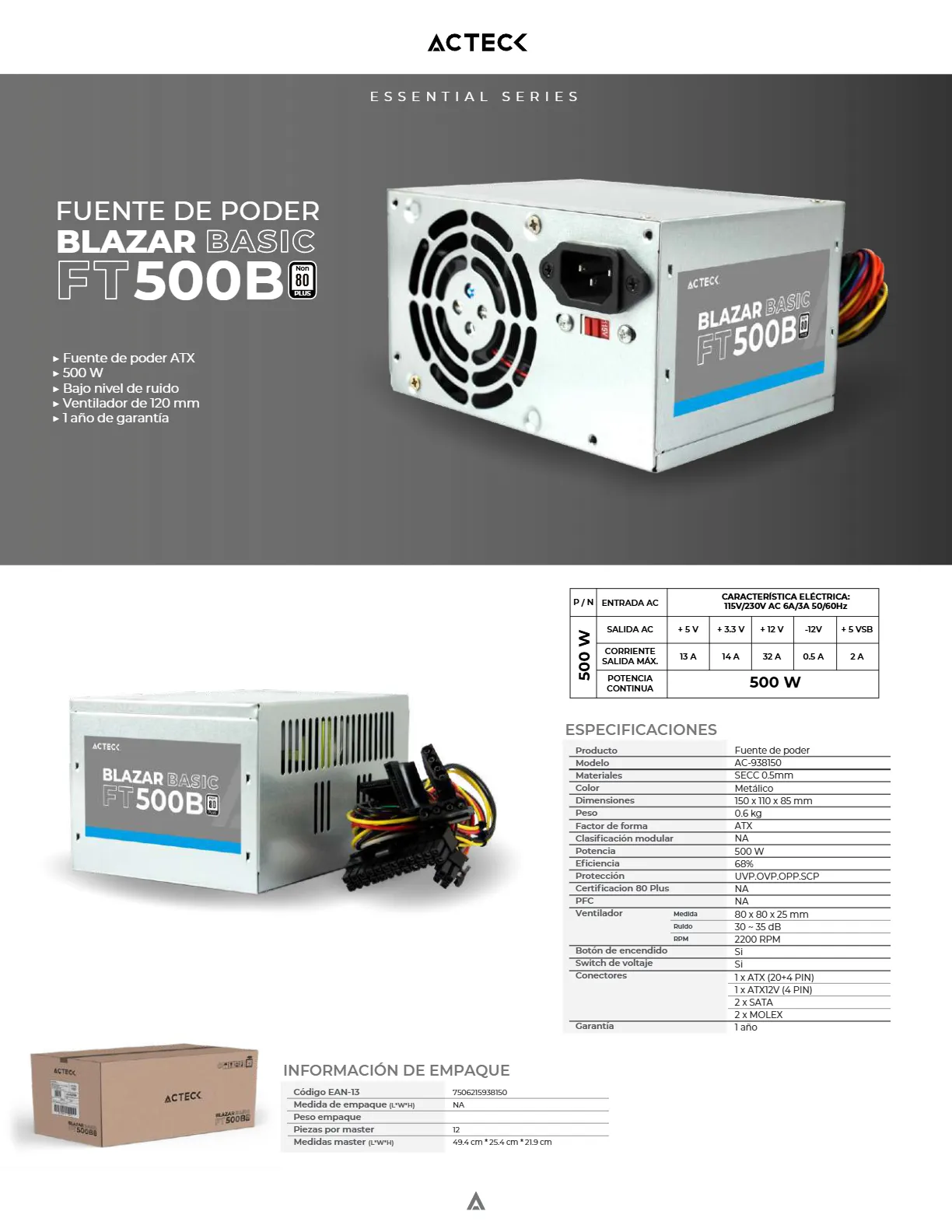 Fuente de Poder ACTECK BLAZAR BASIC FT500B