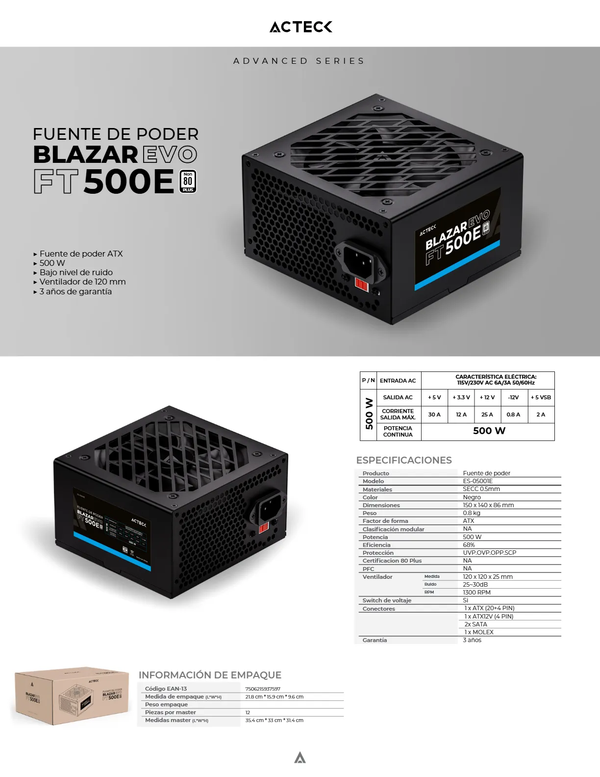 Fuente De Poder ACTECK BLAZAR EVO FT500E ADVANCED SERIES
