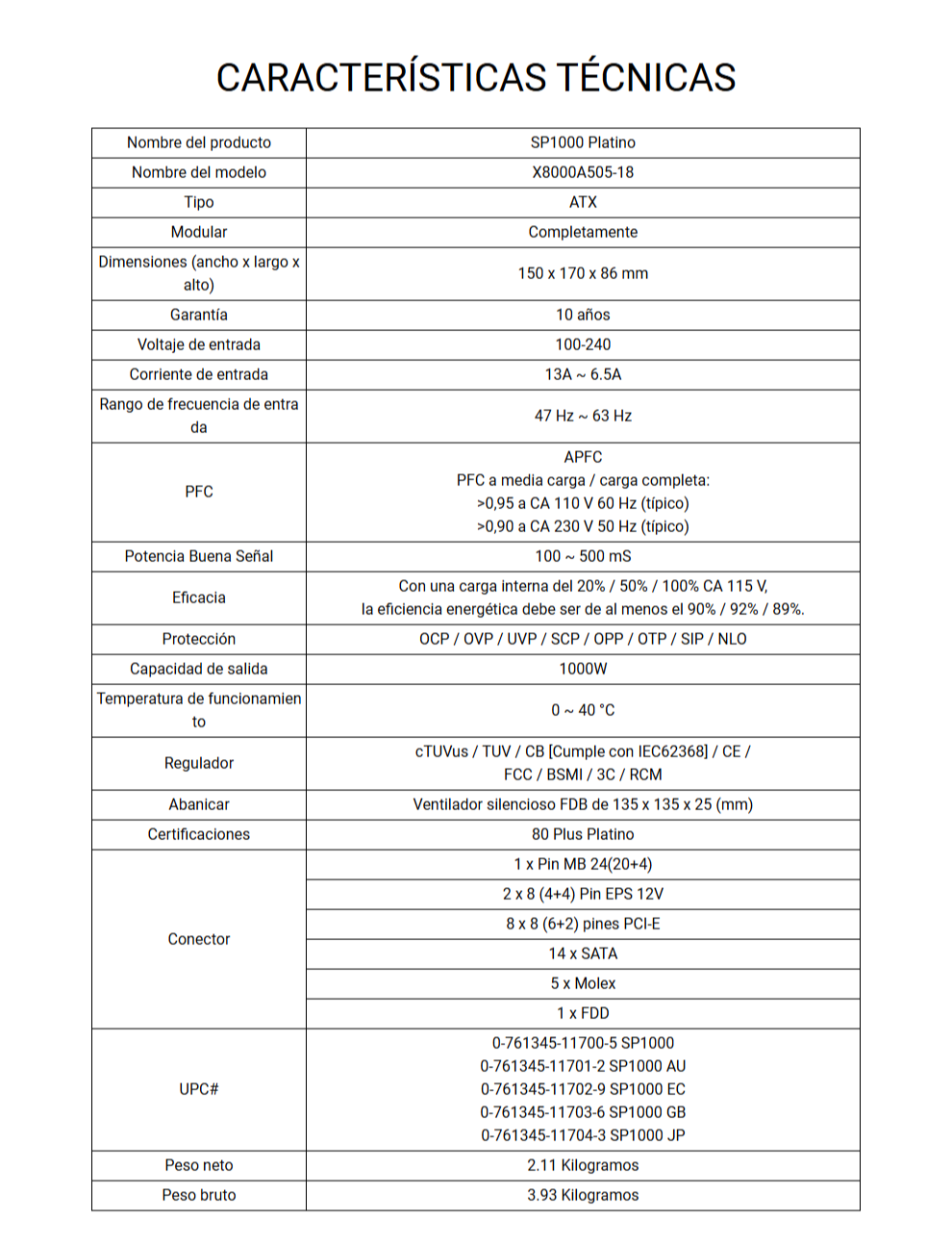 • Certificado 80 Plus Platinum