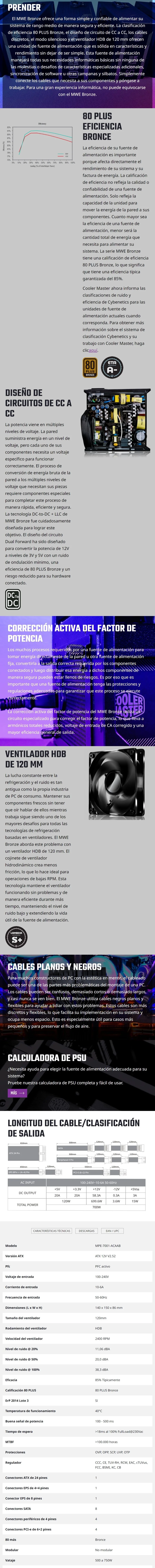 Fuente De Poder Cooler Master MWE 700 BRONCE – V2 700W / 80 Plus Bronze / 24 pines / CPU 4+4 pines / x2 PCI-e 6+2 pines / x8 SATA / MPE-7001-ACAAB-US