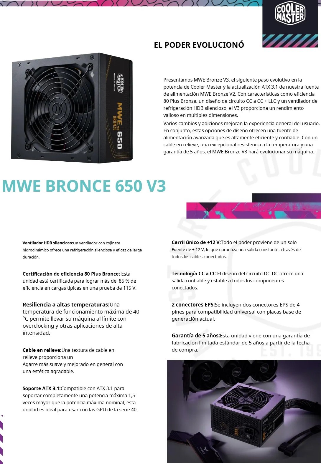 Fuente De Poder COOLER MASTER MWE BRONZE 650 V3