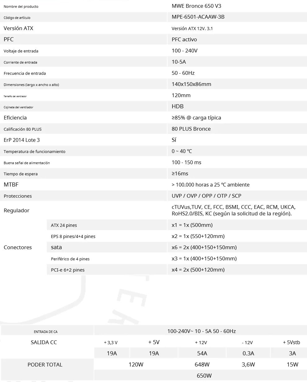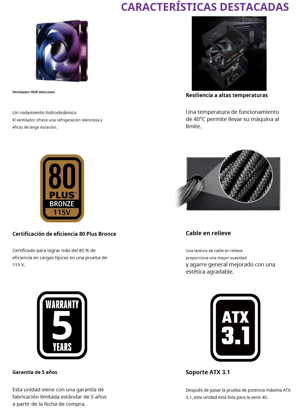 • Certificación 80 PLUS: 80 PLUS Bronze