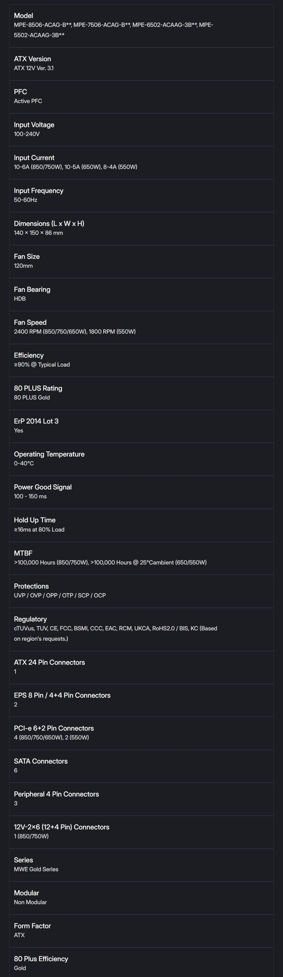 Fuente de Poder Cooler Master MWE V3 80 PLUS Gold 850W – No Modular, 80+ GOLD, 24 pin ATX, PCI-e 6+2 Pin, EPS 4+4 Pin, 120mm, Color Negro