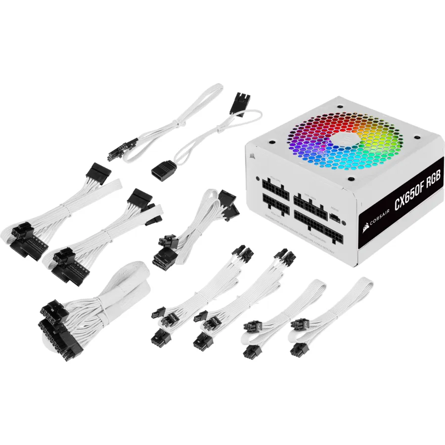 Fuente De Poder Corsair Cx650f Rgb 650w / 80 Plus Bronze / Modular / Atx / 20+4 Pin / Cpu 4+4 / Pci-e 6+2 / Blanca