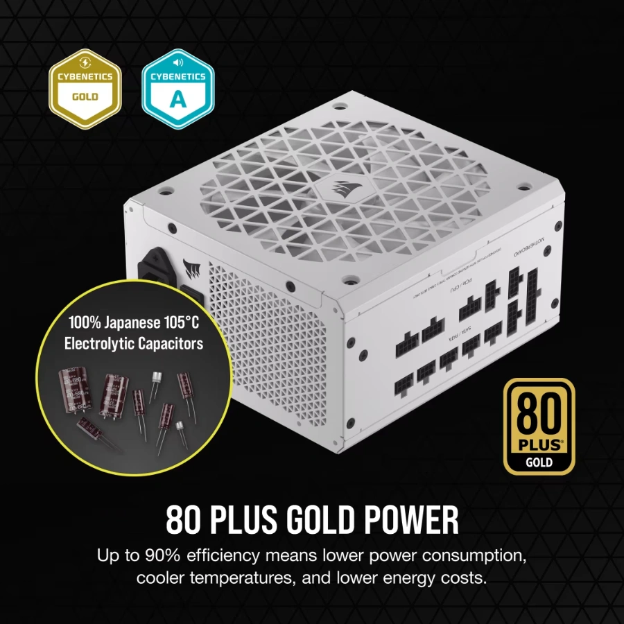 Fuente de Poder Corsair RM850X SHIFT 8580 PLUS Gold – Full Modular, 80+ GOLD, 24 pin, ATX 3.1, PCIe 5.1, PCI-e 6+2 Pin, EPS 4+4 Pin, 120mm, Blanco