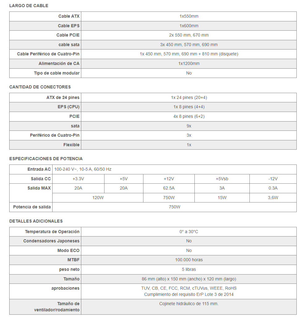 Sé el primero en valorar “Fuente De Poder EVGA 750BP / 750W / 80 Plus Bronze / 20+4Pines / Cpu 4+4 / Pci-E 6+2 / Sata / ATX / Negro / 100-BP-0750-K1”