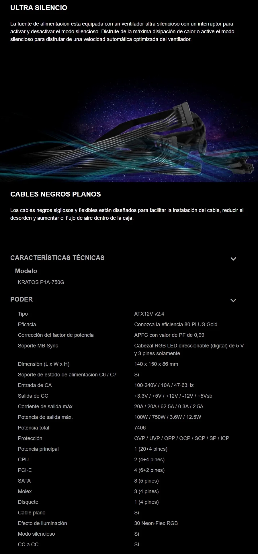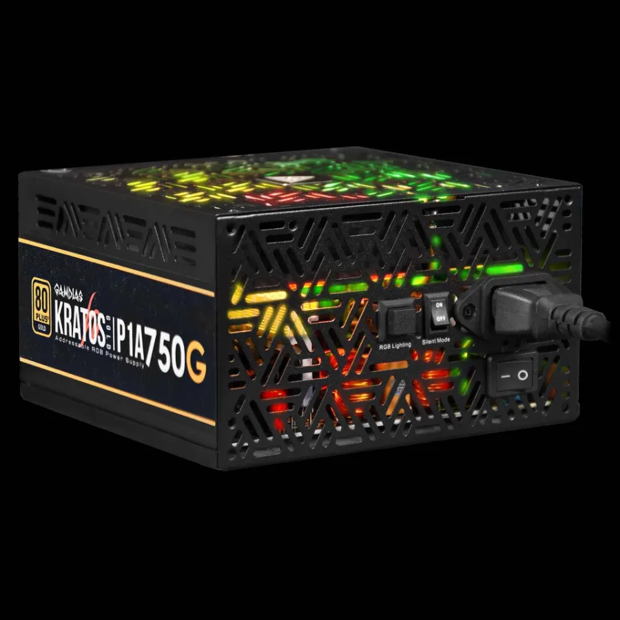 Fuente De Poder GAMDIAS E1-500 750w / Aura Sync Rgb / 80 Plus Gold / 20+4 pines / CPU 4+4 pines / PCI-e x2 6+2 pines