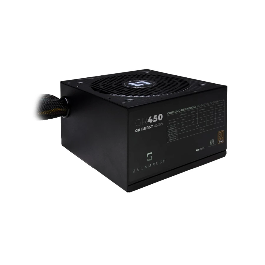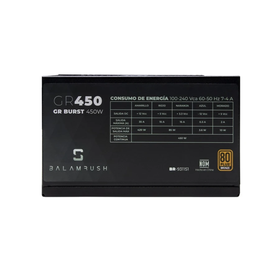 Fuente De Poder GAMER BALAM RUSH GR BURST / 450W / 80 Plus Bronze / 20+4 Pin / Cpu 4+4 Pin / Pci-E 6+2 Pin / Sata / Molex / Negro / BR-931151