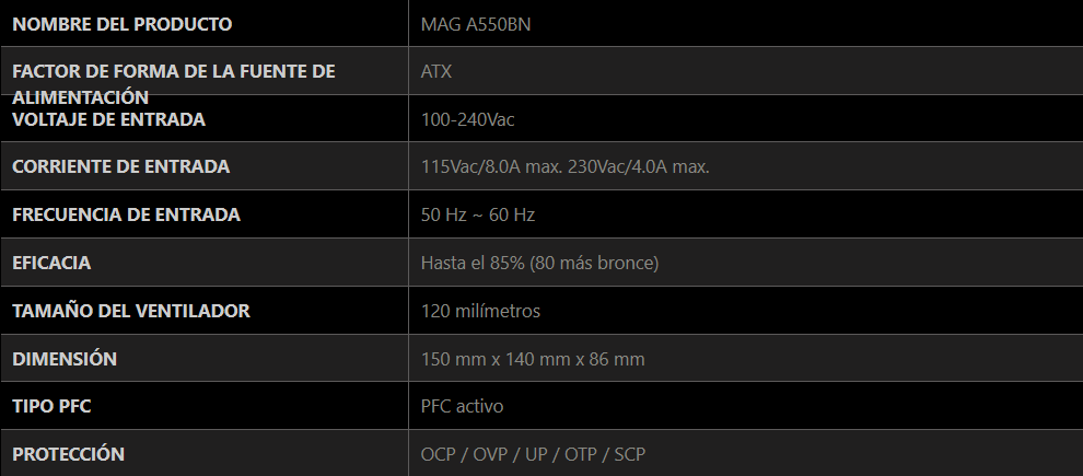 Sé el primero en valorar “Fuente De Poder MSI MAG A550BN / 550W / 80 Plus Bronze / 20+4Pin, Cpu 4+4 / Pci-E 6+2 / Sata / Molex / Negro”