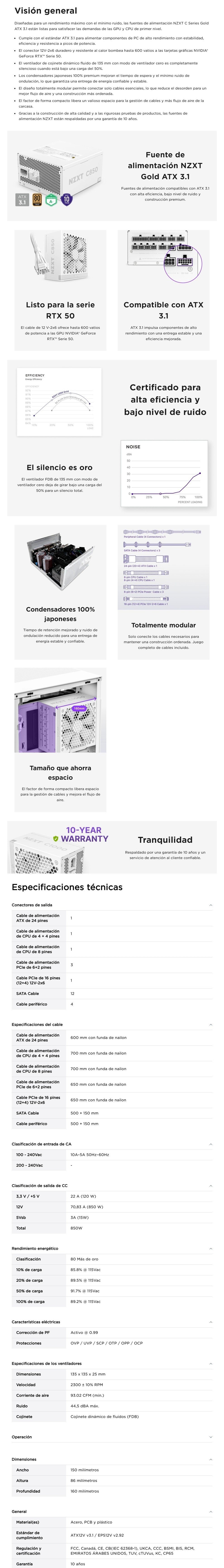 • Cumple con el estándar ATX 3.1 para alimentar componentes de PC de alto rendimiento con estabilidad, eficiencia y resistencia a picos de potencia.