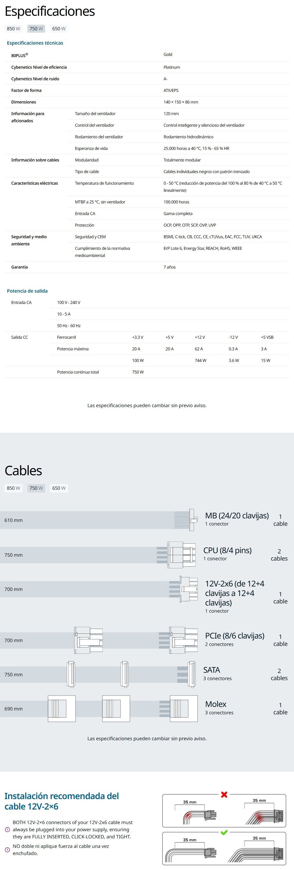 Nota: La precisión de la información, presentación, imágenes, título o especificaciones del producto pueden cambiar sin previo aviso.