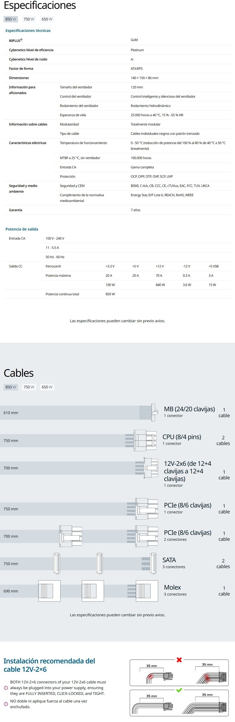 Nota: La precisión de la información, presentación, imágenes, título o especificaciones del producto pueden cambiar sin previo aviso.