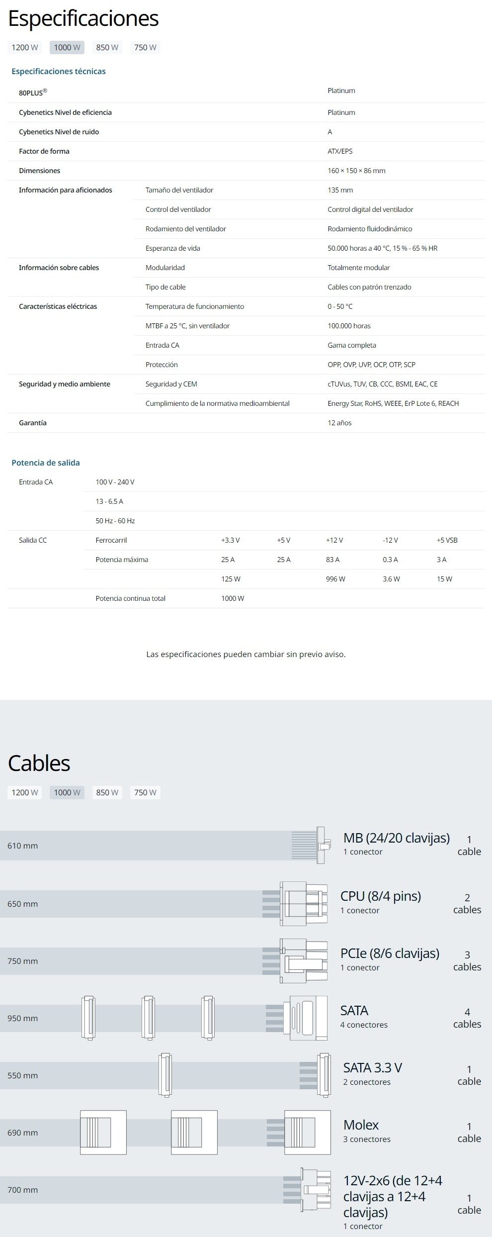• Añadido cable 12V-2×6 para cumplir con las nuevas tarjetas gráficas.