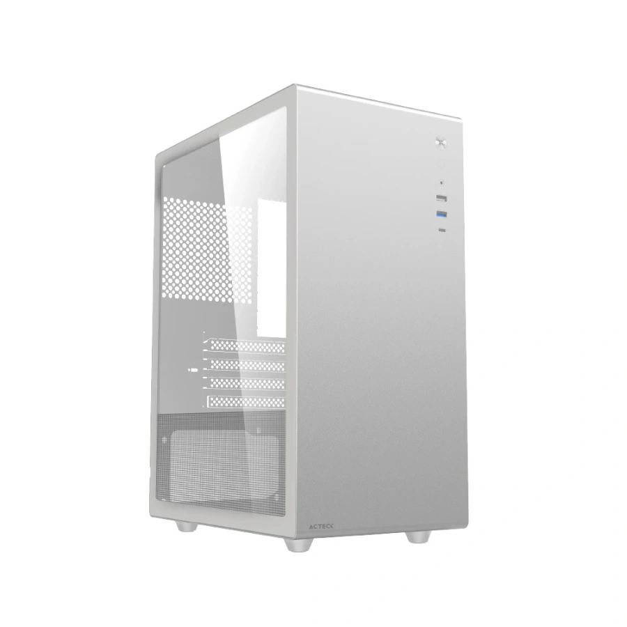 Gabinete ACTECK Neuss Pro GI717 / Micro-ATX / Cristal Templado / No Incluye Ventiladores / USB 2.0, USB 3.0, USB-C / Blanco