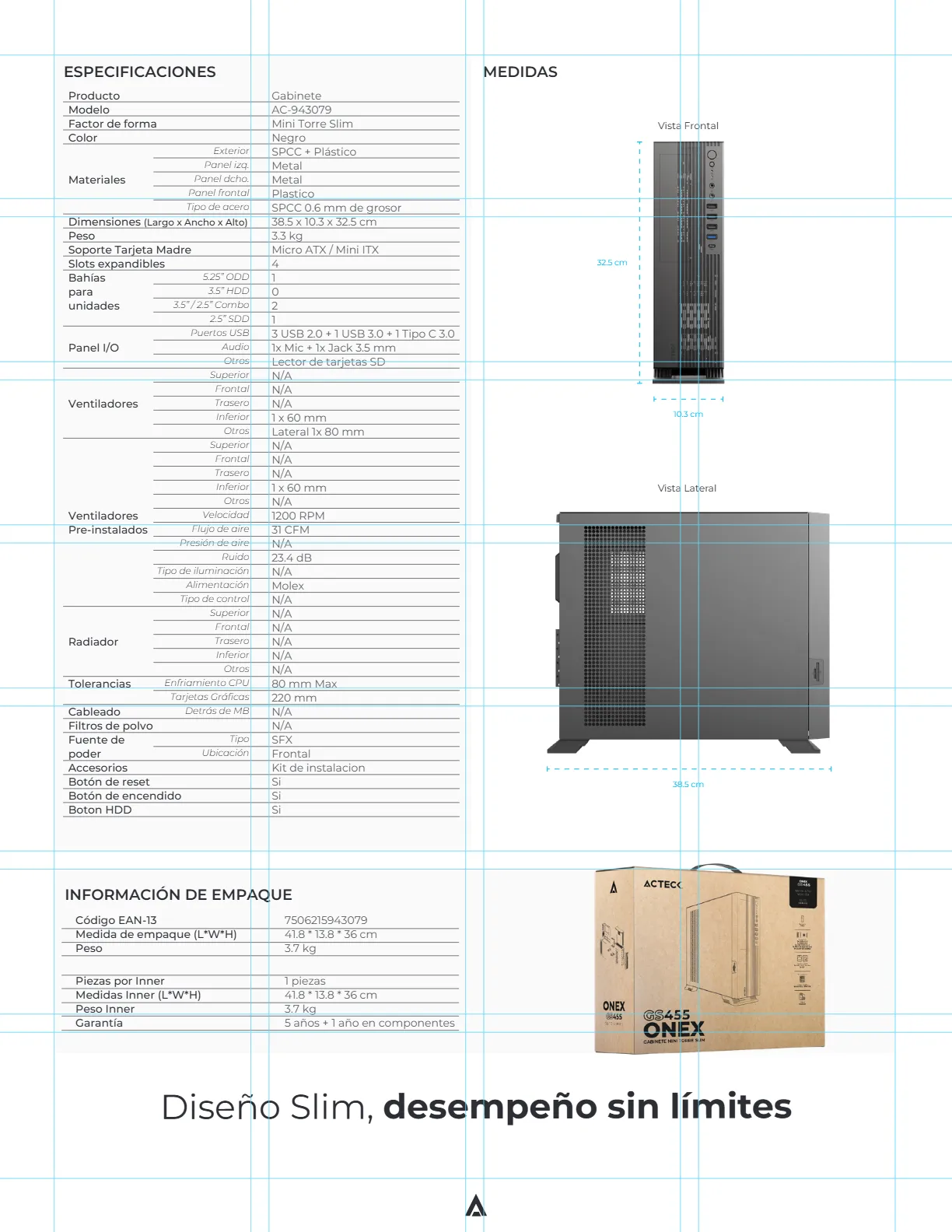 Gabinete ACTECK Slim + F2120 ONEX GS455