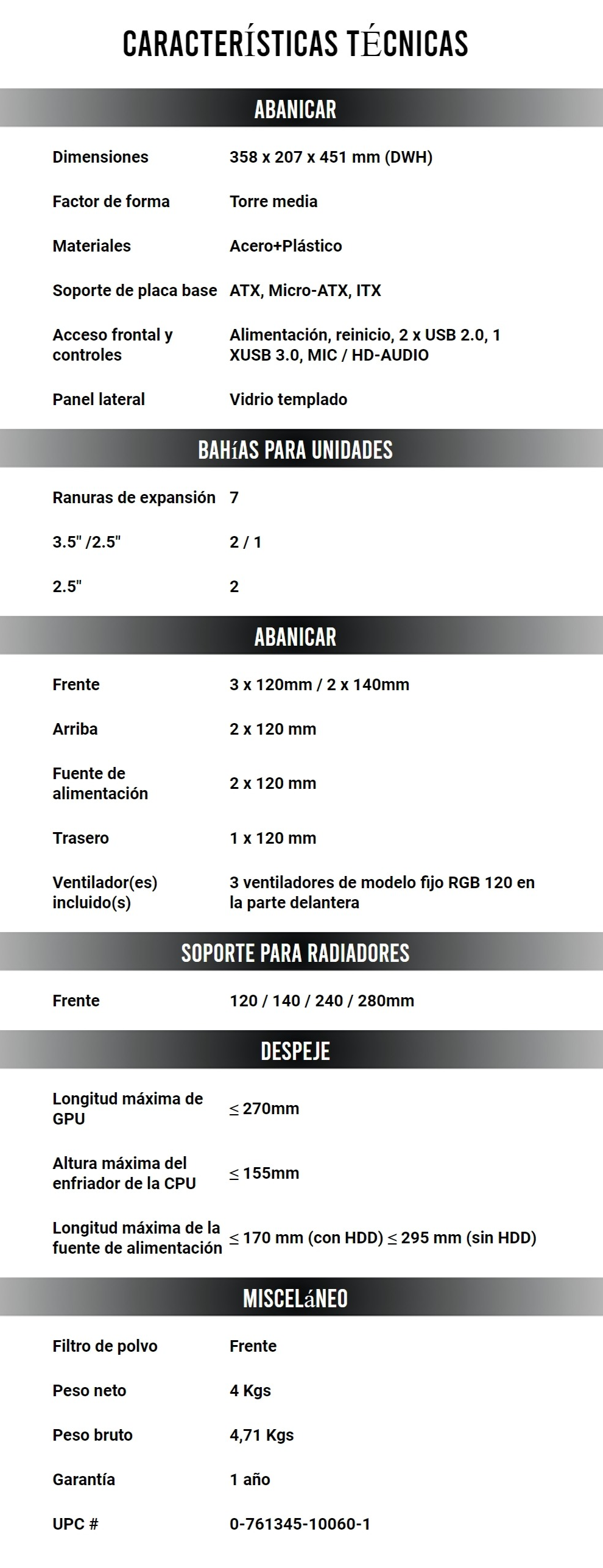 Nota: La precisión de la información, presentación, imágenes, título o especificaciones del producto pueden cambiar sin previo aviso.
