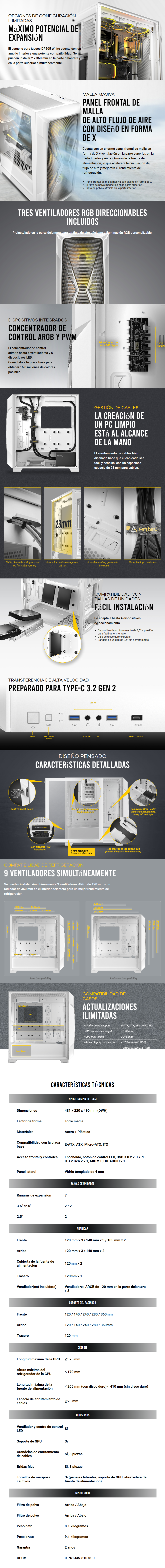 Cuenta con un enorme panel frontal de malla en forma de X y ventilación en la parte superior, en la parte inferior y en la cámara de la fuente de alimentación, lo que acelerará la circulación del flujo de aire y mejorará el rendimiento de refrigeración.