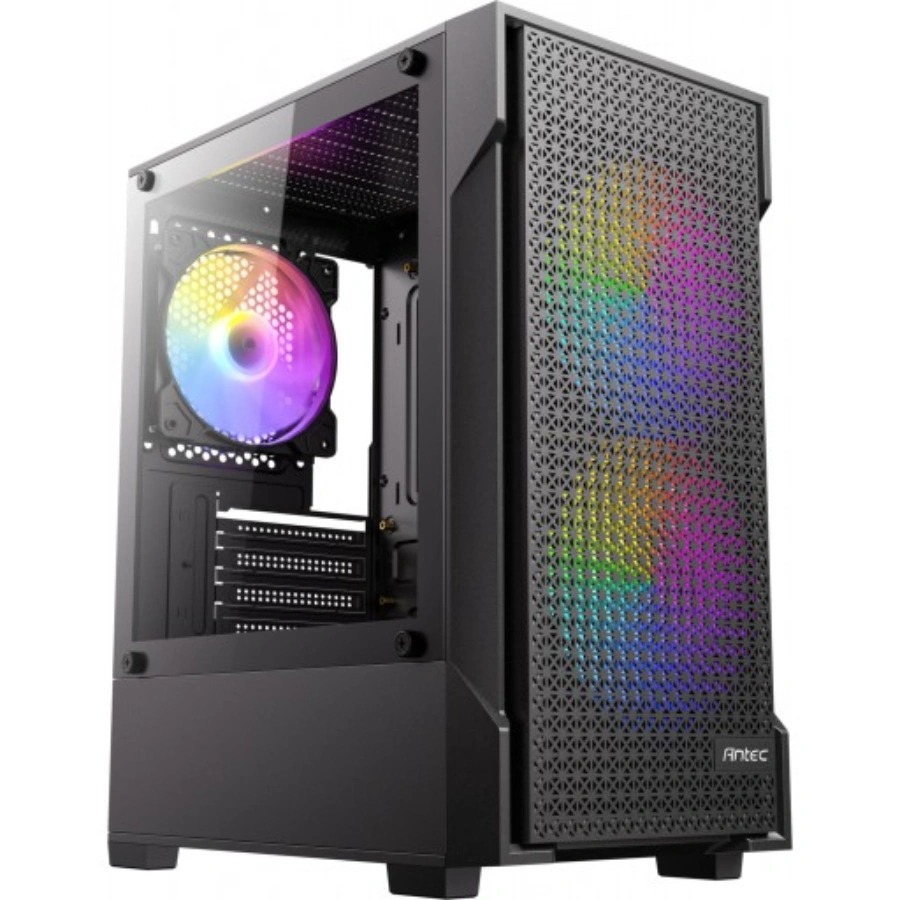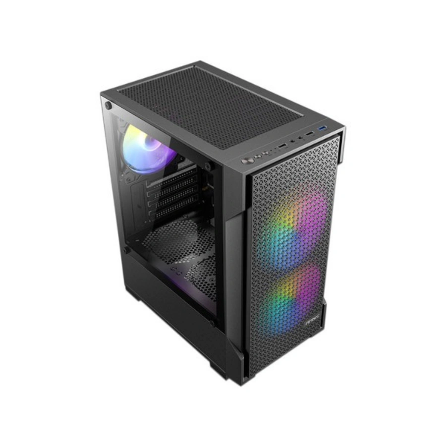Gabinete Antec VX100M ARGB – Mini Torre, Micro-ATX/ITX, Panel Lateral Vidrio Templado, 3x Ventiladores ARGB 120mm Incluidos, Soporte GPU hasta 275mm – Negro