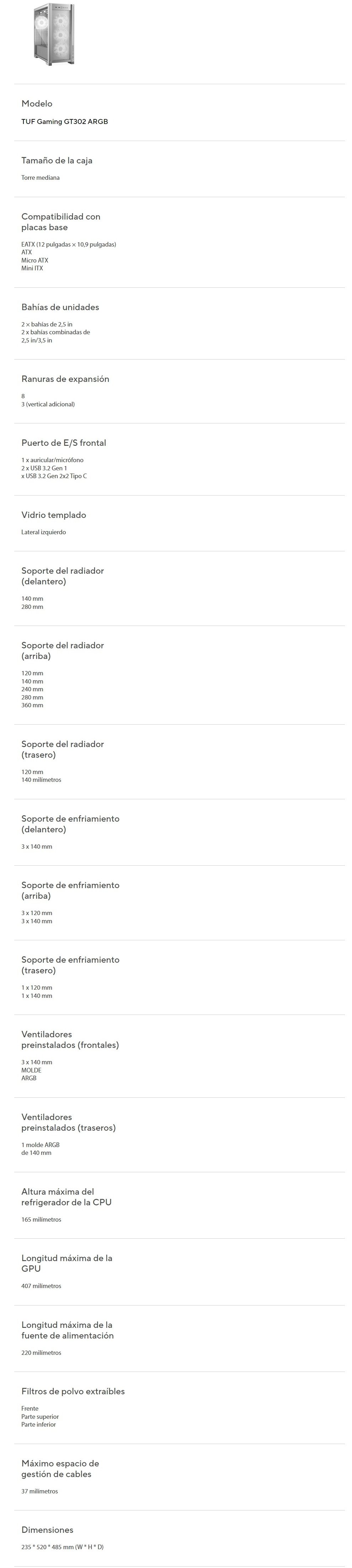 SKU: TUF GAMING GT302 ARGB BLA Categoría: