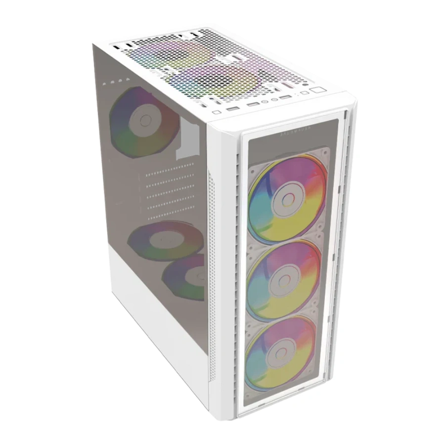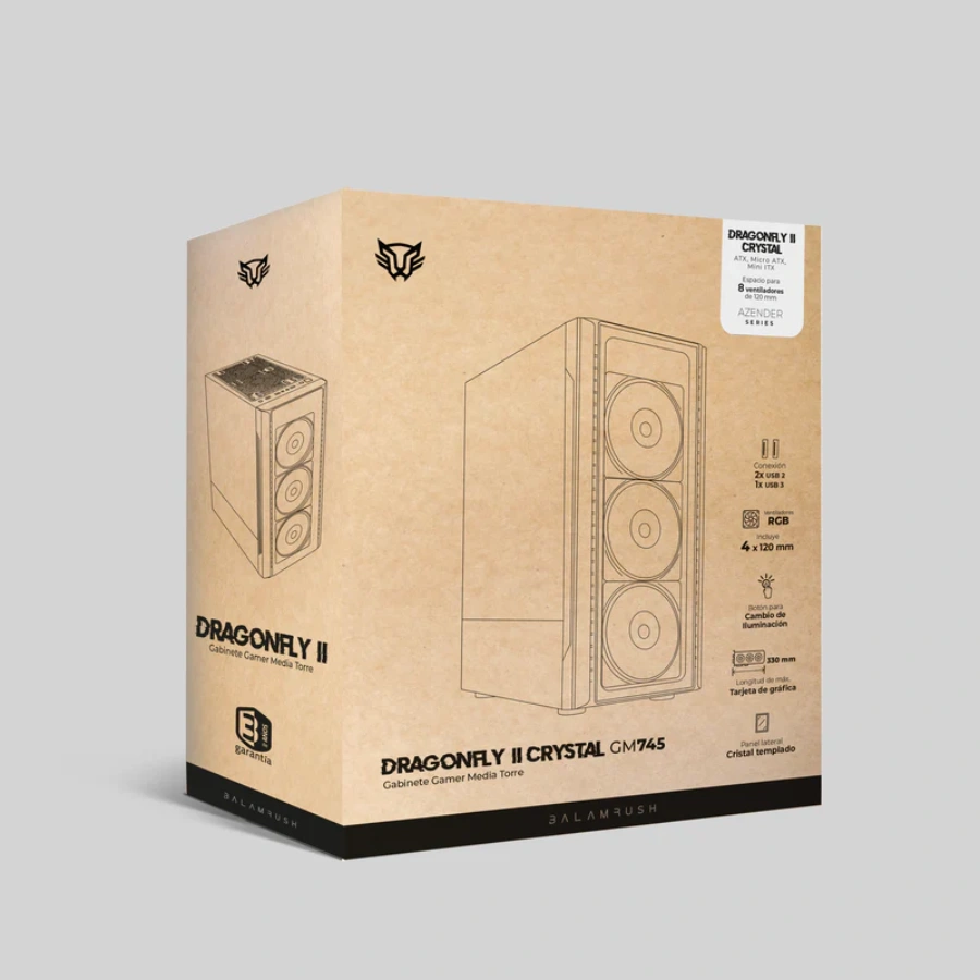 Gabinete BALAM RUSH DRAGONFLY CRYSTAL GM745 / ATX, Micro ATX, Mini ITX / Cristal Templado / 4 Ventiladores Incluidos RGB / USB 2.0, 3.0 / Blanco