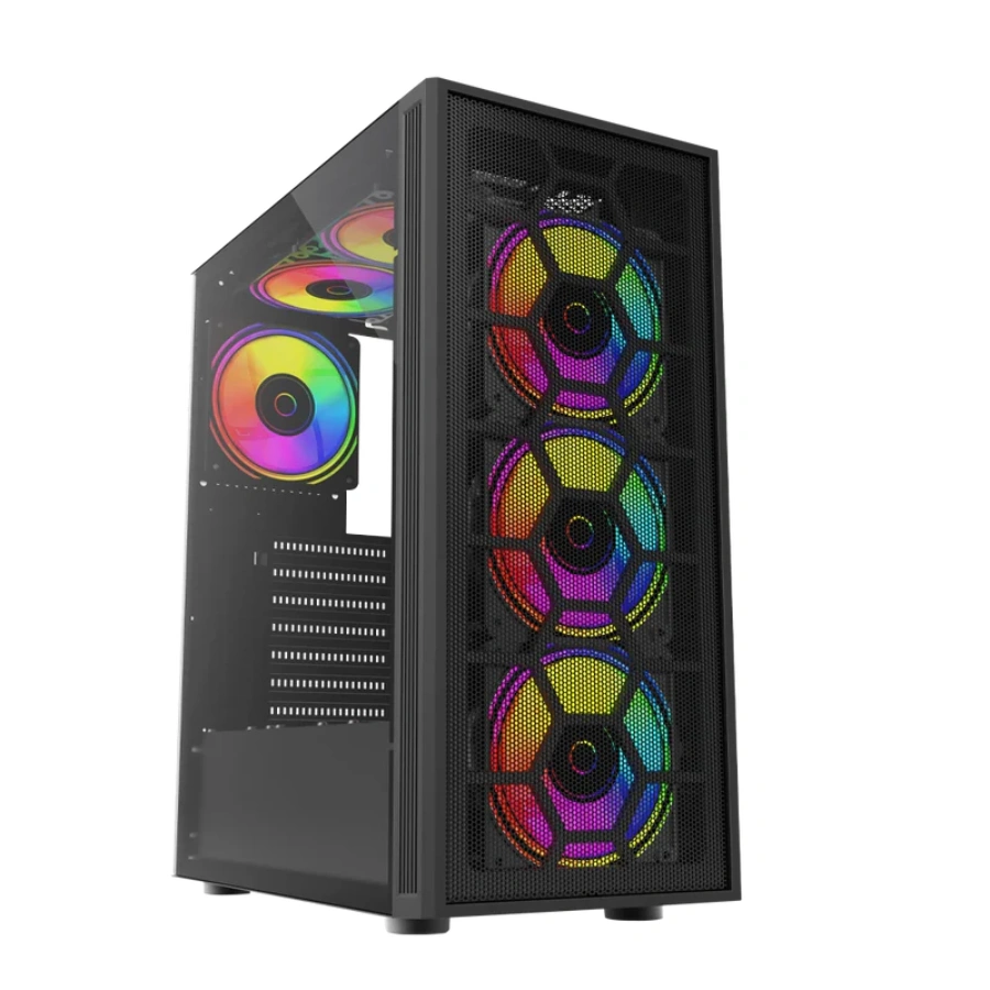 Gabinete BALAM RUSH Dragonfly Mesh GM740 / Media Torre / ATX, Micro ATX, Mini ITX / Panel Cristal Templado / Incluye 4 Ventiladores RGB / USB 2.0, 3.0 / Color Negro