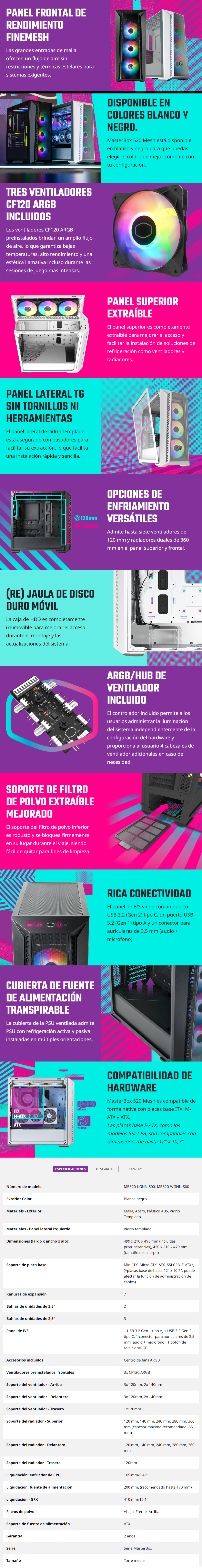 Sé el primero en valorar “Gabinete COOLER MASTER MASTERBOX MB520 MALLA ARGB / ATX / Vidrio Templado / 3 Vent. Incluidos / Hub ARGB incluido / USB 3.2, USB Tipo-C / Blanco”