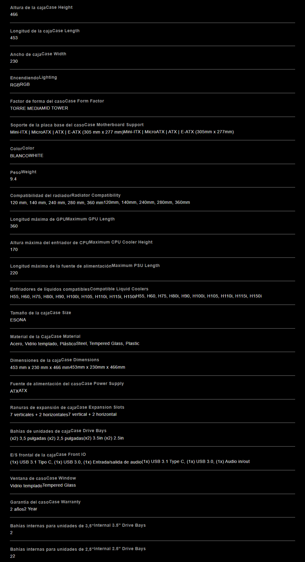 Nota: La precisión de la información, presentación, imágenes, título o especificaciones del producto pueden cambiar sin previo aviso.
