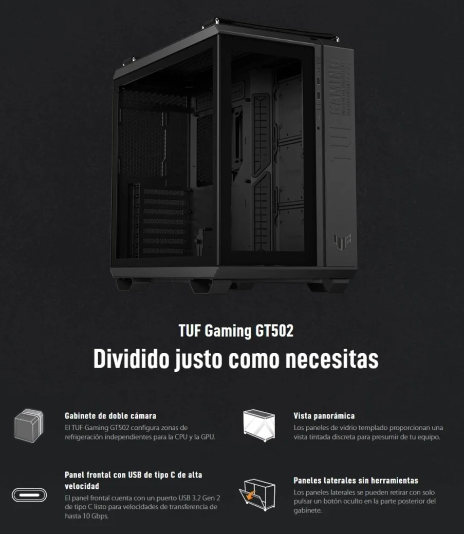 • El TUF Gaming GT502 configura zonas de refrigeración independientes para la CPU y la GPU.