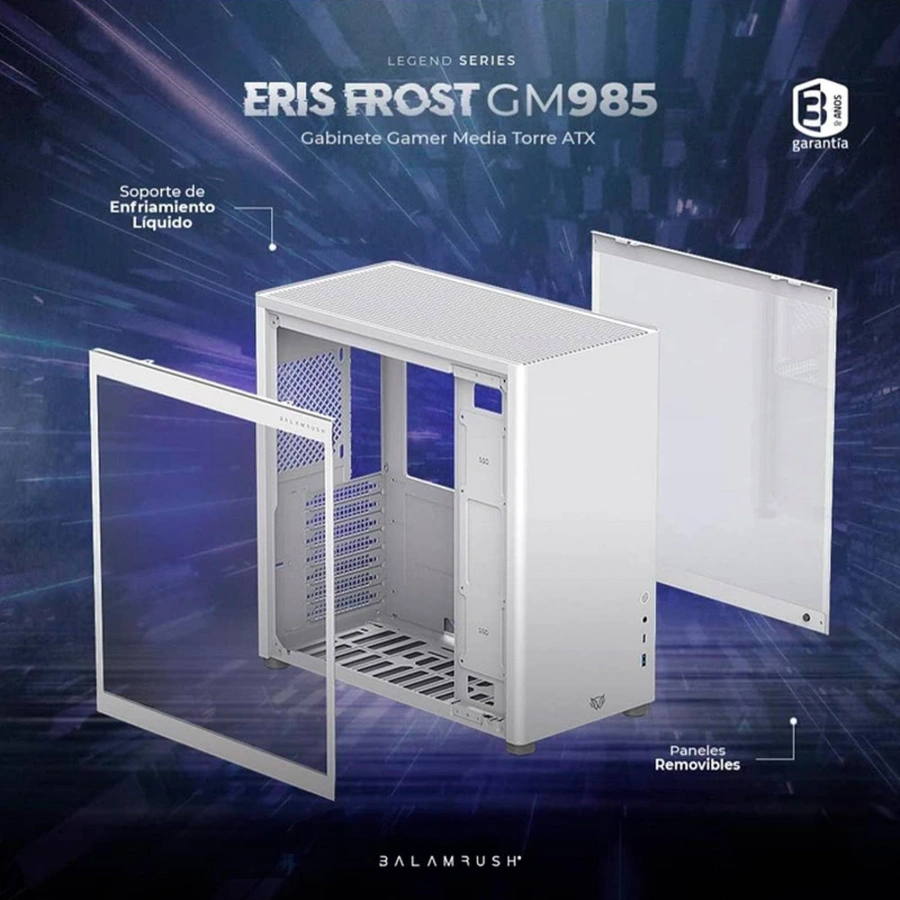 Gabinete Gamer BALAM RUSH ERIS FROST GM985 Con Iluminación Led / Atx, Micro Atx, Mini Itx / Cristal Templado / No Ventiladores Incluidos / Usb C, Usb 3.0 / Blanco