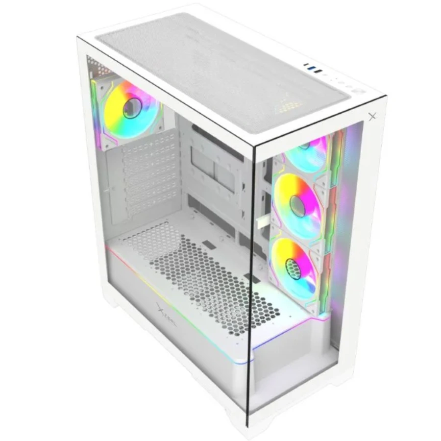 Gabinete Gamer Xzeal XZ160 – E-ATX, 4 Ventiladores ARGB 120mm, GPU hasta 420mm, Vidrio Templado – Blanco