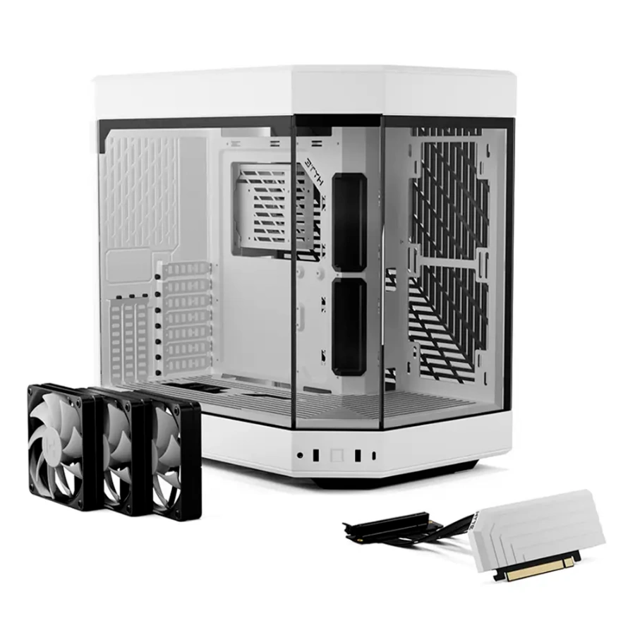 Gabinete HYTE Y60 – ATX Mid Tower, 3 Ventiladores Incluidos, Cristal Templado Panorámico de Doble Cámara, Cable Elevador PCIE 4.0 – Blanco