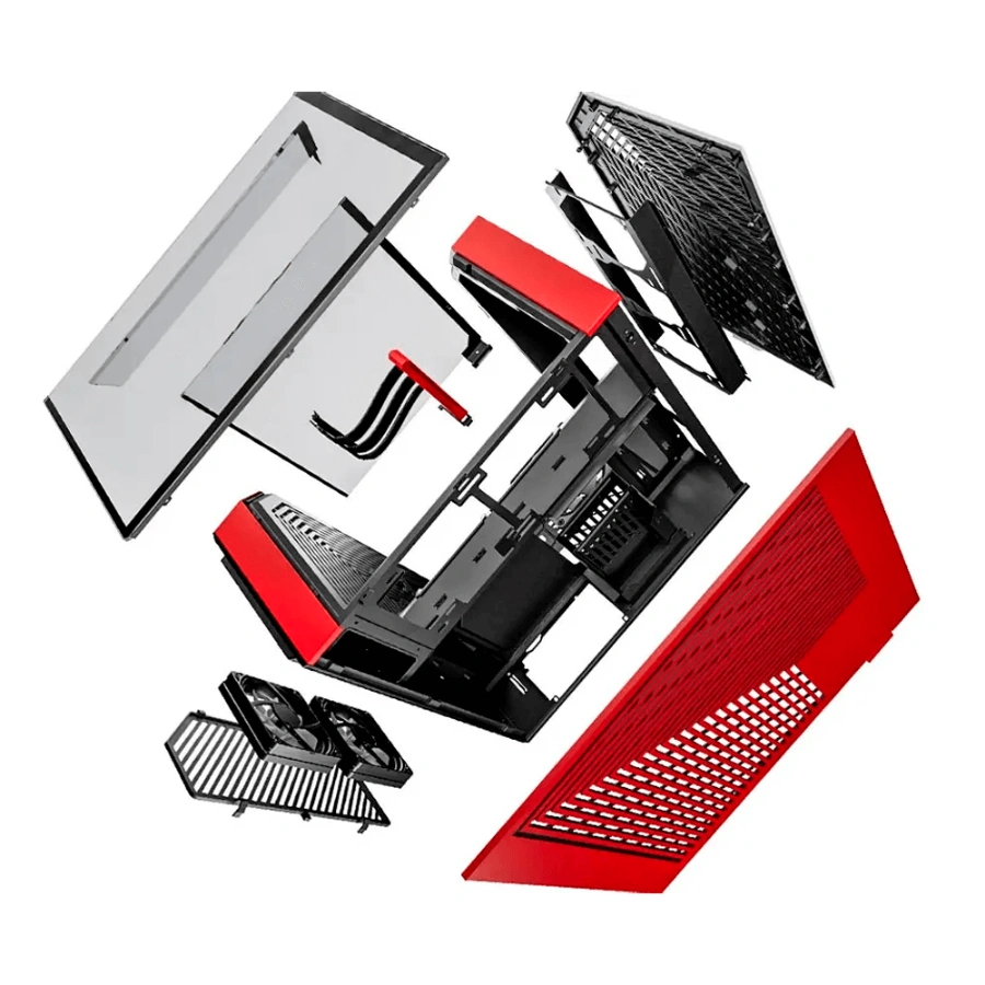 No hay pilar en la esquina. El Y60 cuenta con un diseño de cristal templado panorámico de 3 piezas para un potencial fotográfico y de visualización supremo. Vea su construcción tal como estaba destinada a ser vista desde el lado izquierdo o derecho de su escritorio con un simple giro.