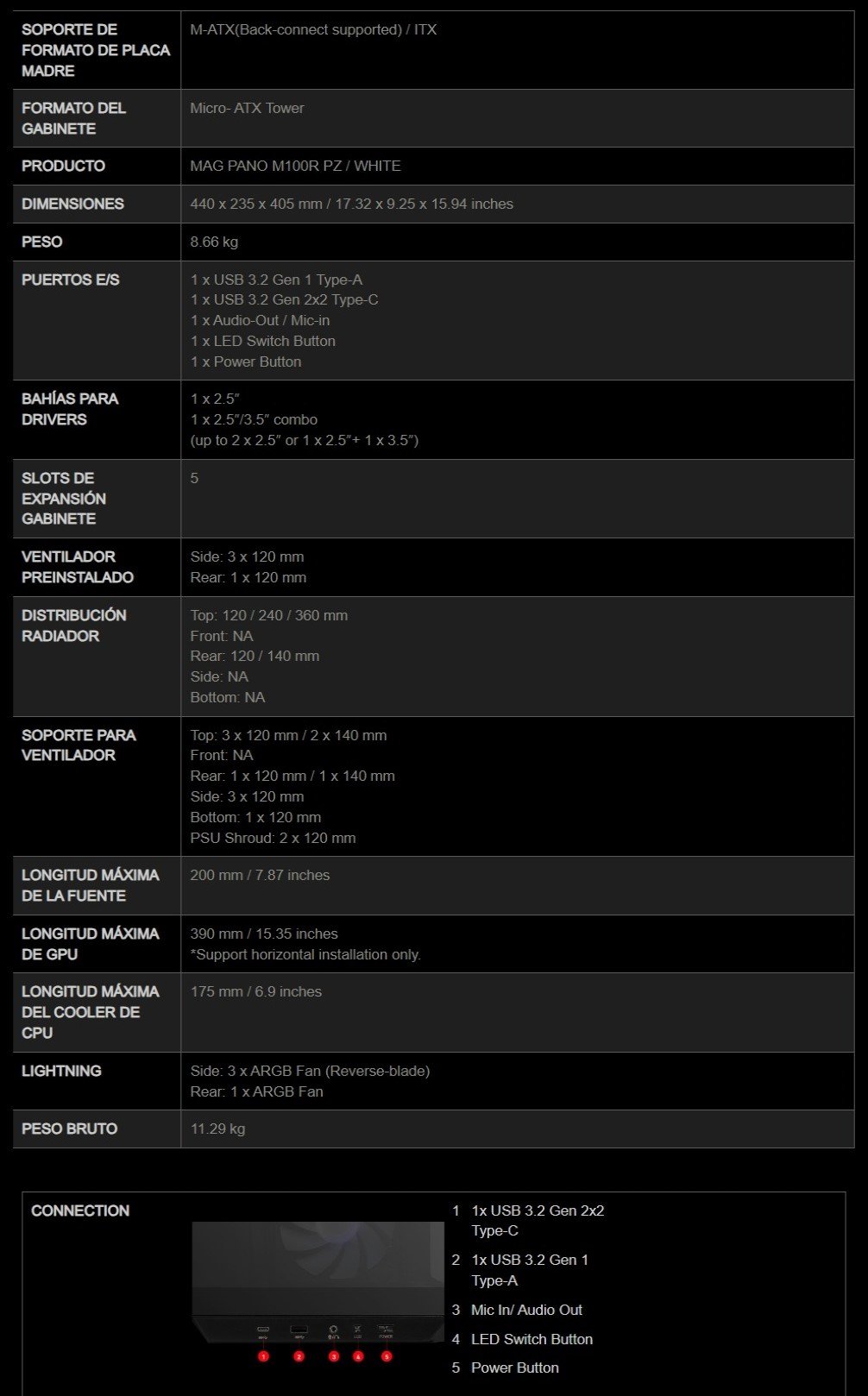 • Compatible con placas madre Micro-ATX Back-connect.