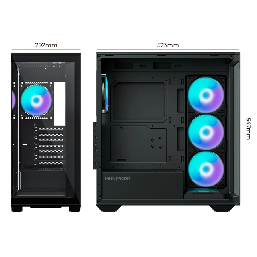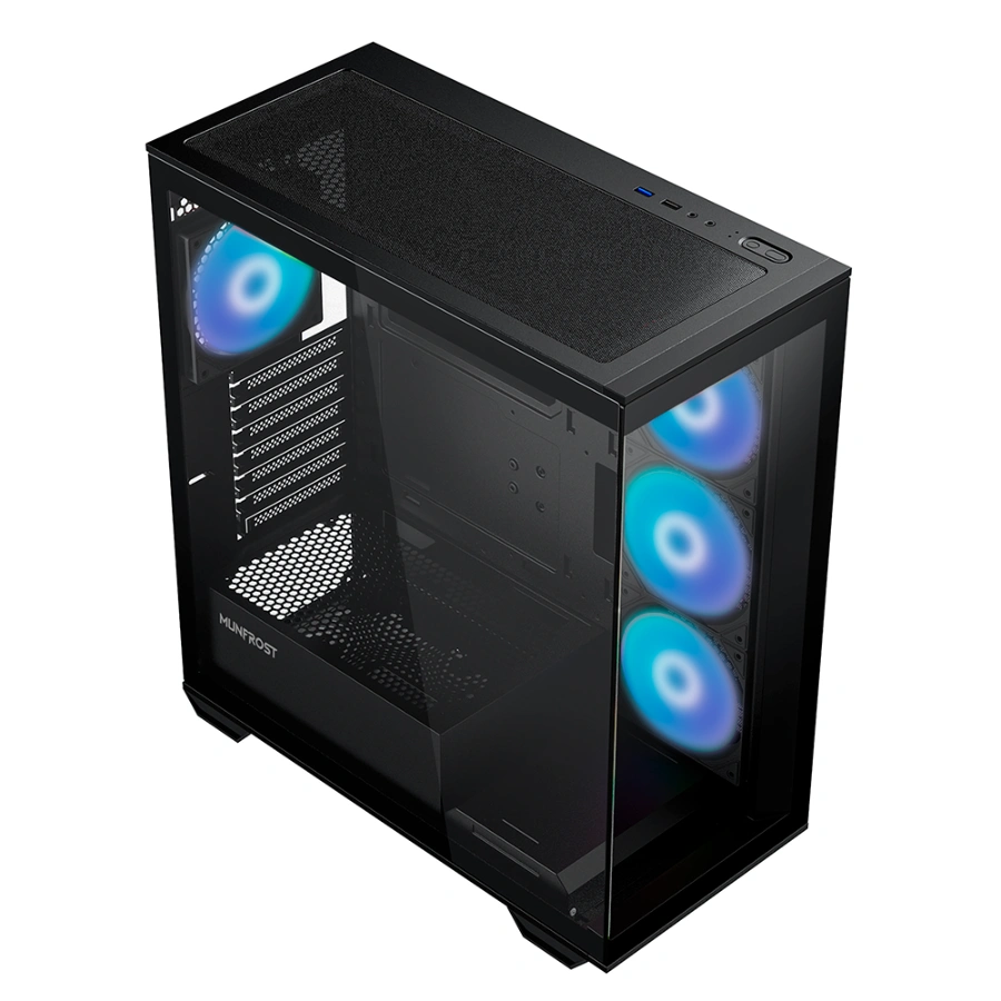 Gabinete MUNFROST POLARIS BLACK – ATX, Cristal Templado, 4 Vent. Incluidos, USB 3.0, Negro