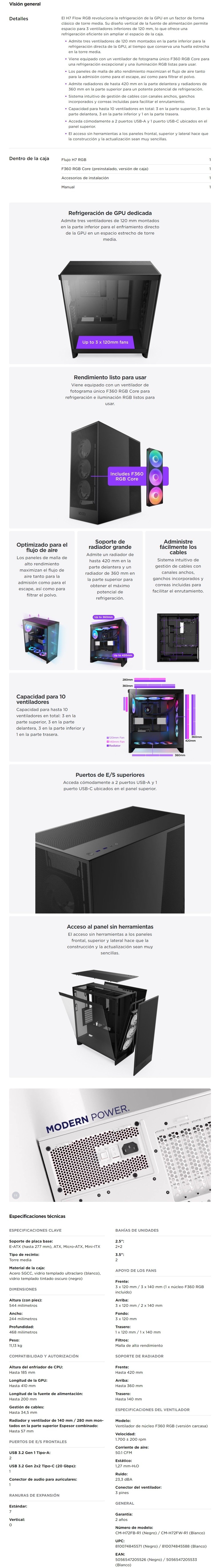 • Viene equipado con un ventilador de fotograma único F360 RGB Core para una refrigeración excepcional y una iluminación RGB listas para usar.
