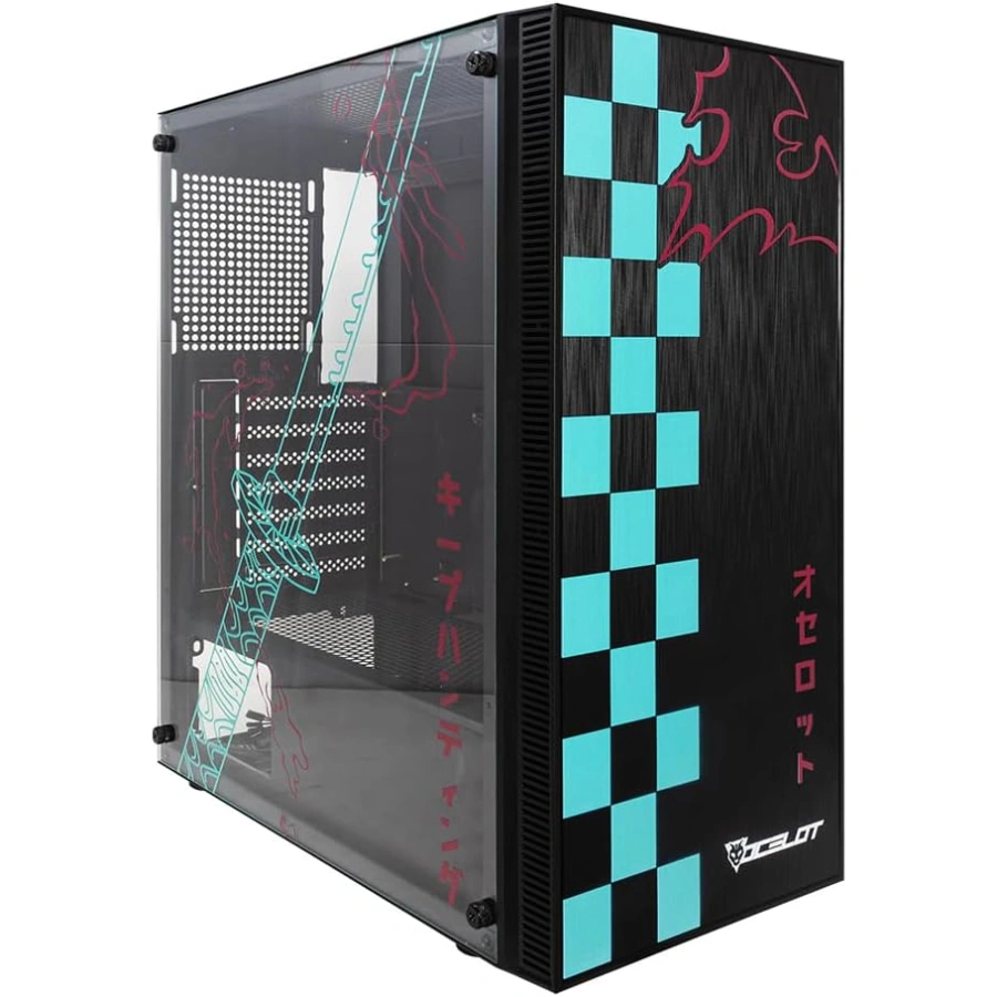 Gabinete OCELOT Gaming BLACK KATANA / ATX / Cristal Templado / 3Vent. Incluidos / USB 2.0, 3.0 / Negro Con Diseño Anime