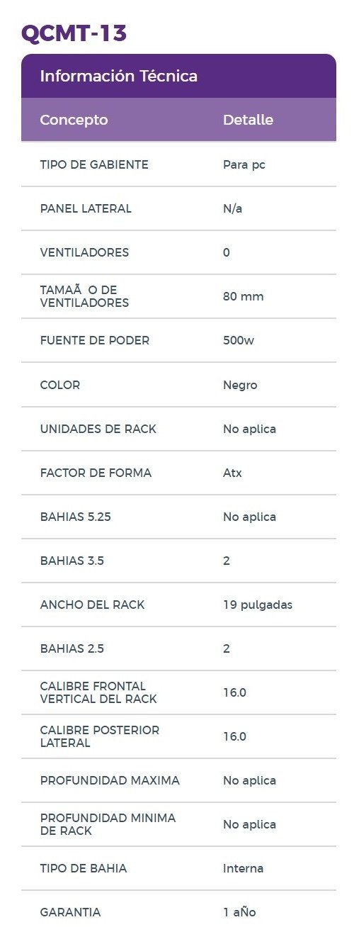 Sé el primero en valorar “Gabinete QUARONI QCMT-13 / ATX / Fuente De Poder Incluida De 500W / X1 USB 2.0, X 1USB 3.0 / Negro”