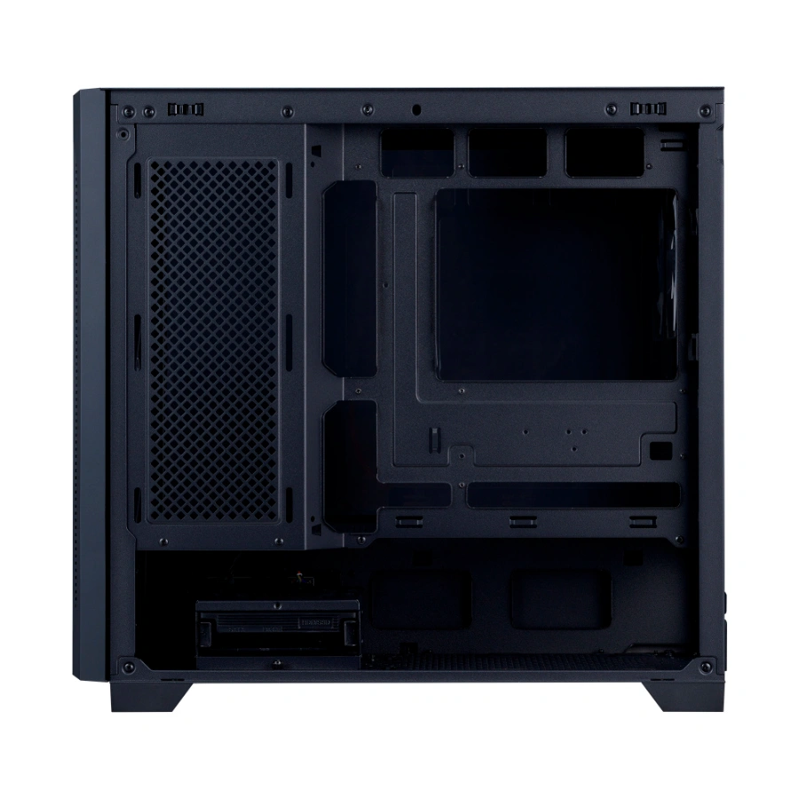 • Panel lateral de vidrio templado de 3mm con 2 bahías híbridas 2.5″/3.5″ y 5 ranuras de expansión