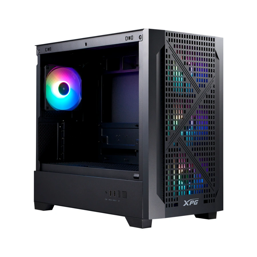 Chasis XPG LANDER 300 Torre Media – Micro-ATX/Mini-ITX, Vidrio Templado 3mm, 4 Ventiladores ARGB 120mm, GPU hasta 390mm, 5 Ranuras de Expansión – Negro