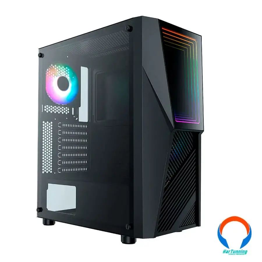 Gabinete rgb atx con panel lateral de cristal templado color negro…