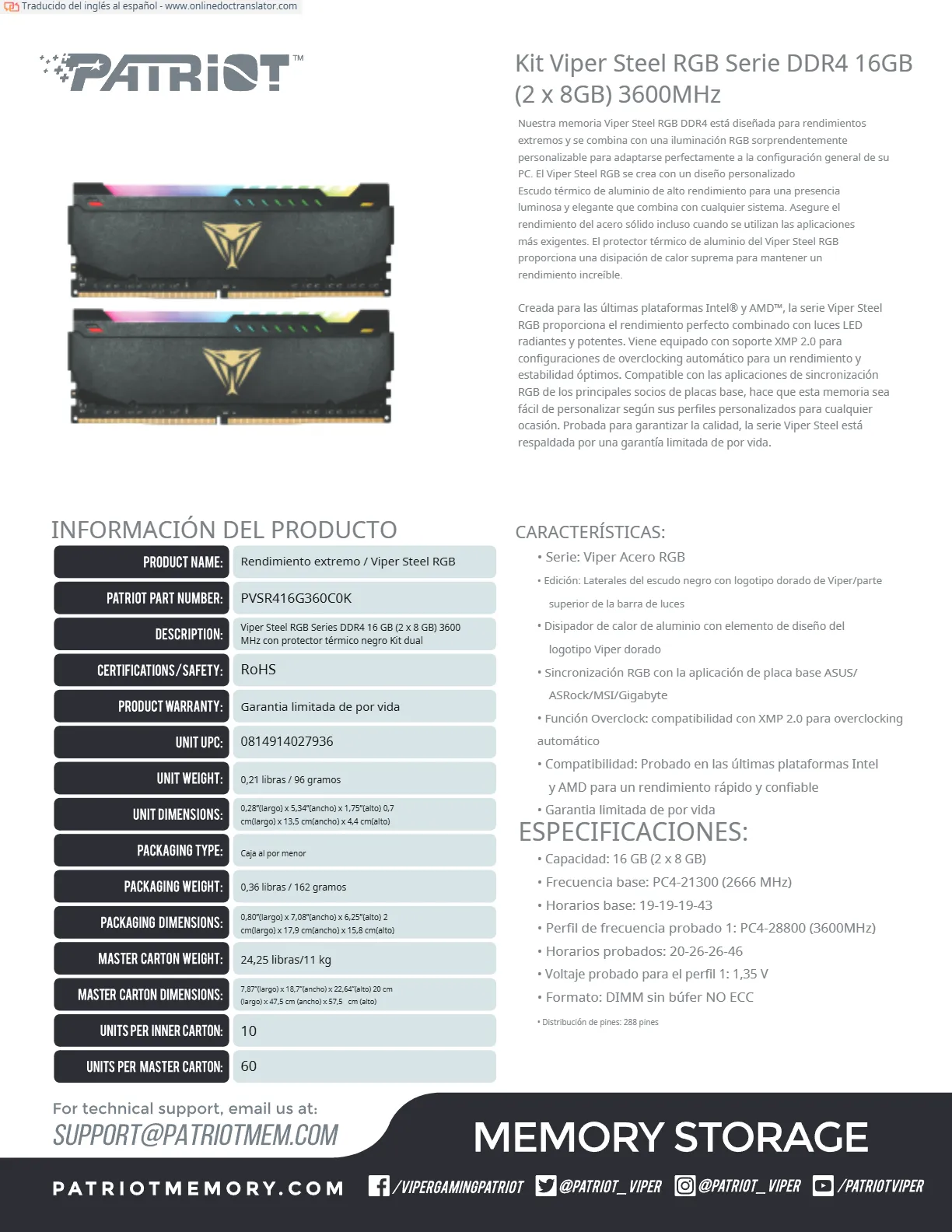 Kit De Memoria RAM PATRIOT VIPER STEEL RGB