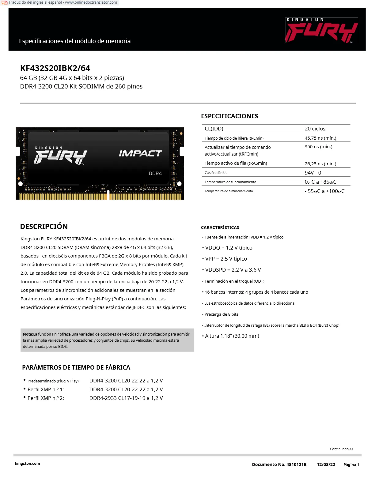 Kit De Memoria RAM SODIMM KINGSTON FURY Impact