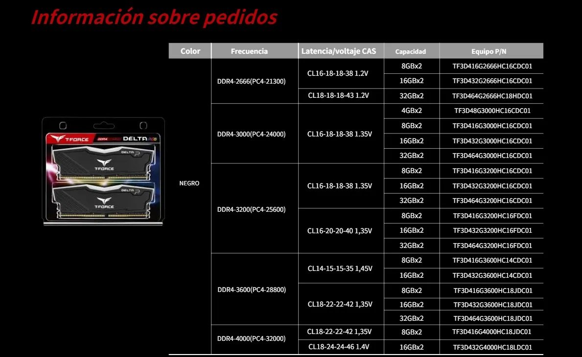 Kit De Memoria RAM TEAMGROUP T-FORCE DELTA RGB / 32GB (2x16GB) / DDR4 3200MHz / CL16 / 1.35V / XMP / Negro