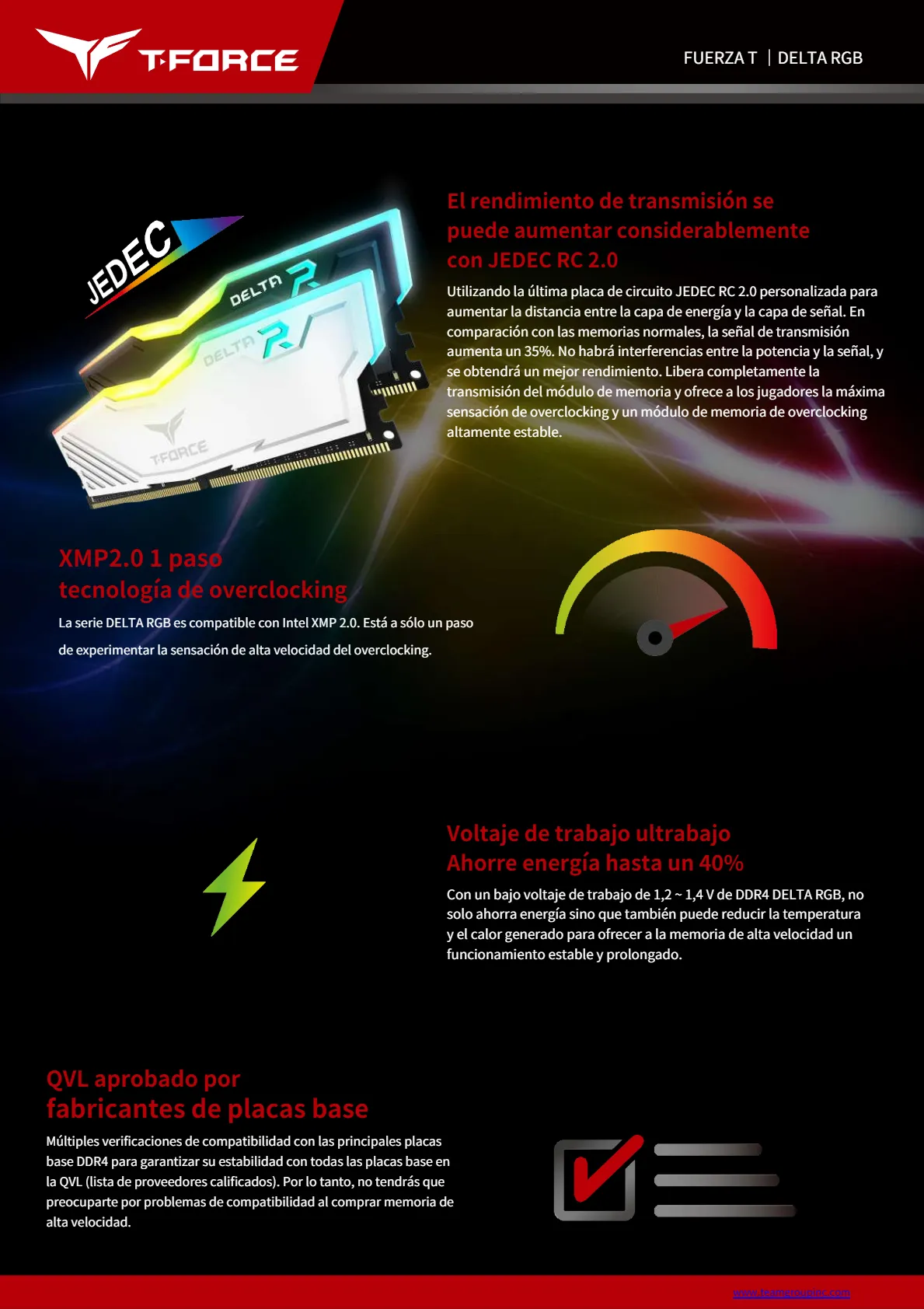 • Con aprobación QVL por parte de todos los fabricantes de placas madre convencionales