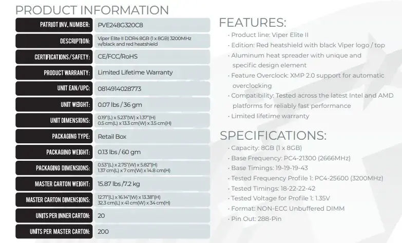 Sé el primero en valorar “Memoria RAM DIMM PATRIOT Viper / 8GB DDR4 / 3200MHz* OC / Disipador Negro Rojo”