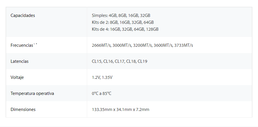• Velocidades de hasta 3733MT/s* y capacidades del kit de hasta 128GB