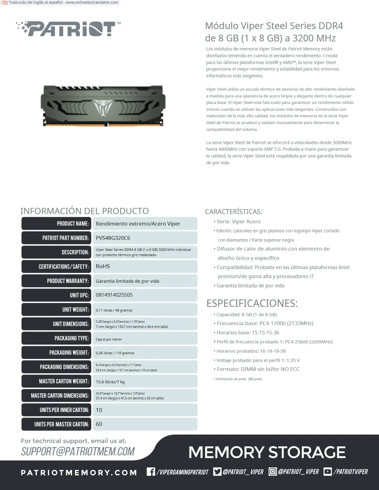 Memoria RAM PATRIOT VIPER STEEL